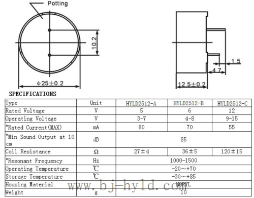 额定电压(V):5 / 6 / 12